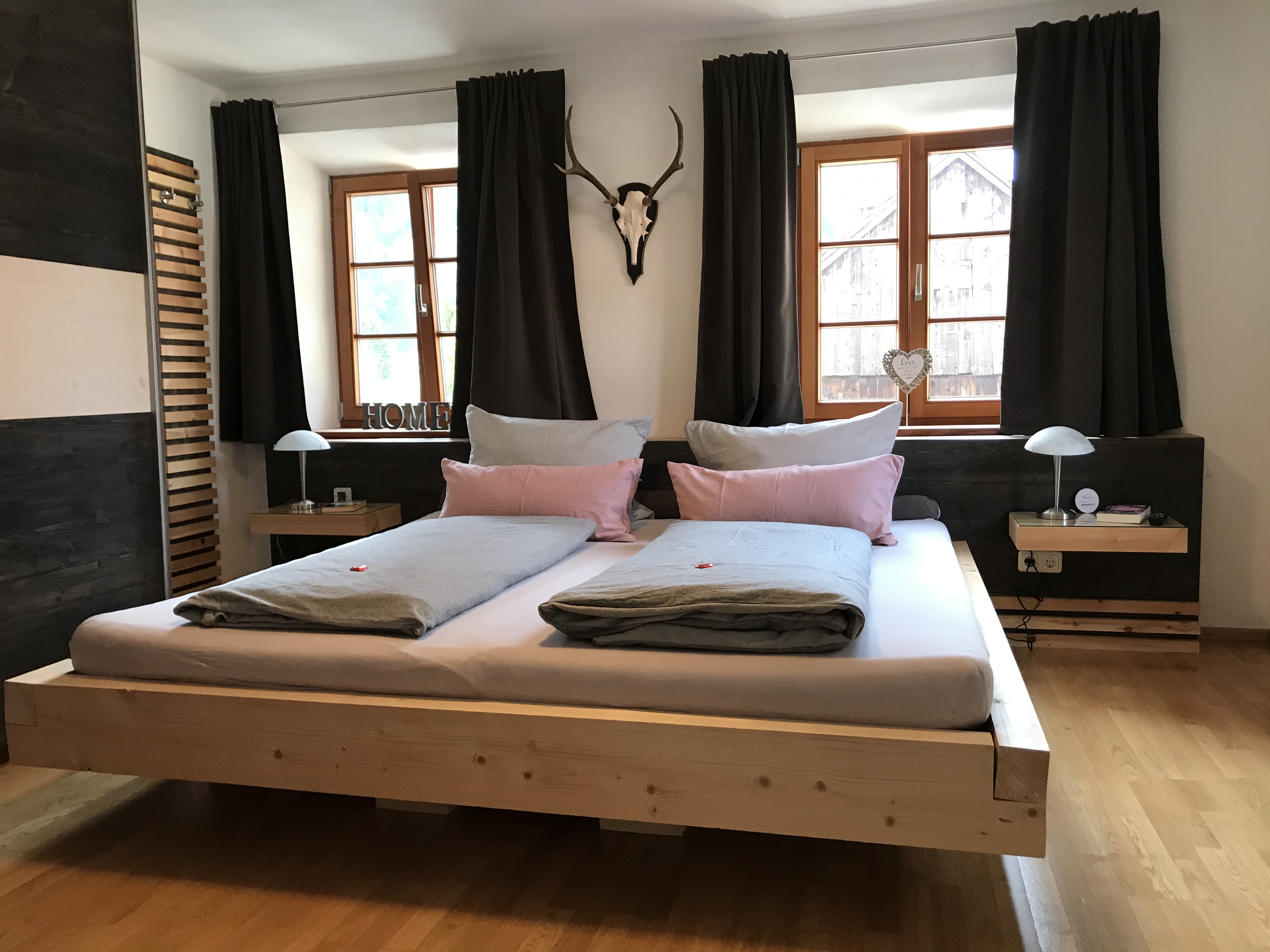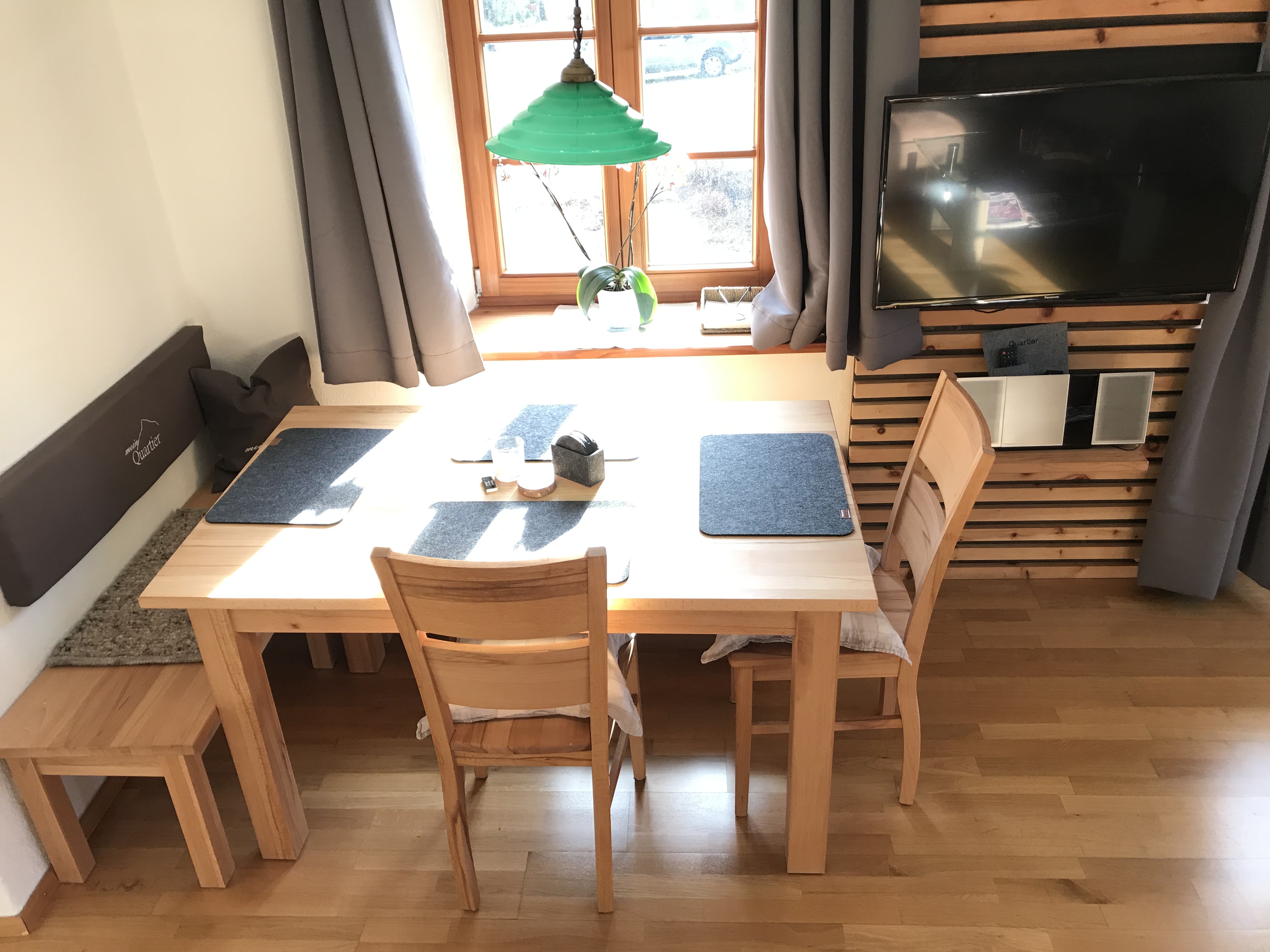 Der perfekter Urlaub für 2 Personen. 1. Obergeschoss Ferienwohung mit 75 qm - Zum Grundriss Ruhige Lage mit überdachten sehr großen Balkon und gigantischem Bergblick auf den Kofel (unser Hausberg von Oberammergau) Süd Balkon komplett mit Glas Überdacht, große Markise Tisch und 2 Stühlen und eine große Rattan Sitzgruppe Komplett eingerichtete Massivholzküche Essbereich, mit Eckbank, großem Tisch, Platz für 6 Personen 1 Schlafzimmer mit einem großen schwebenden Zirbenbett 2x2 m und einem Flat TV und ein großer geräumigen KleiderschrankKachelofen inkl. Brennholz Ein Badezimmer mit Regen-Dusche/WC und Badewanne Handtücher, Bettwäsche werden gestellt und auf Wunsch gewechselt alles ist aufeinander abgestimmt und modern im Alpenländischen Stil eingerichtet Einen kostenfreien Stellplatz direkt vor der Ferienwohnung Neu: GästeApp mein Quartier mit allen Informationen für einen perfekten Urlaub in Oberammergau keine Endreinigungskosten, keine Kaution, Neu: kontaktloser Self check in und Check out möglich3 Person auf Wunsch möglich Für unsere Geschäftsreisenden, die NATO Schule ist bequem in 10 Minuten zu Fuß erreichbar, der Bus von der NATO Schule haltet direkt vor dem Haus Jetzt Buchen